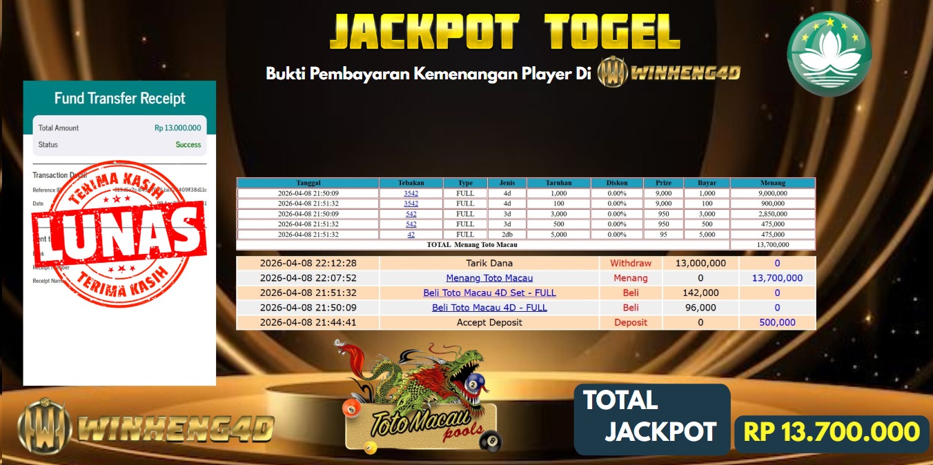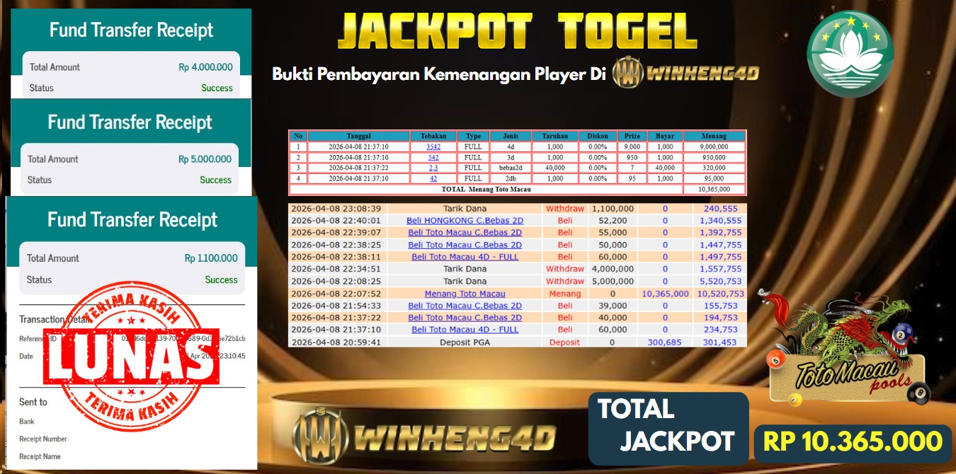 SELAMAT KEPADA MEMBER JP TOGEL TOTO MACAU Rp 10.000.000,- LUNAS