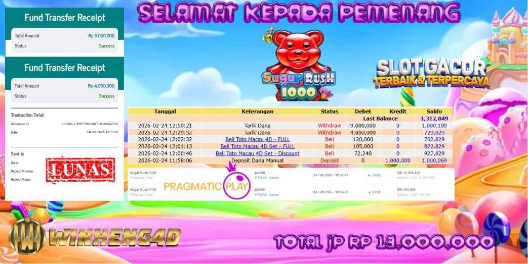 SELAMAT KEPADA MEMBER JP TOGEL TOTO MACAU Rp 14.250.000,- LUNAS