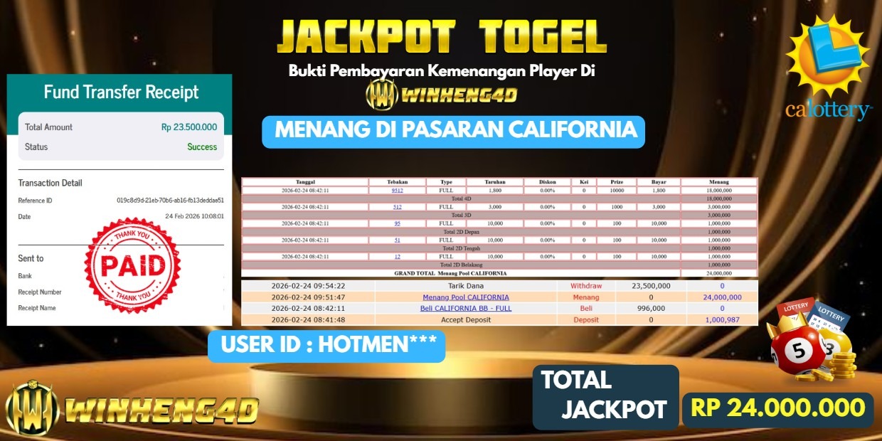 Selamat kepada User ID : HOTM***EN Telah berhasil mendapatkan kemenangan besar pada Permainan JP TOGEL CALIFORNIA Dengan kemenangan Sebesar Rp … Baca selengkapnya...