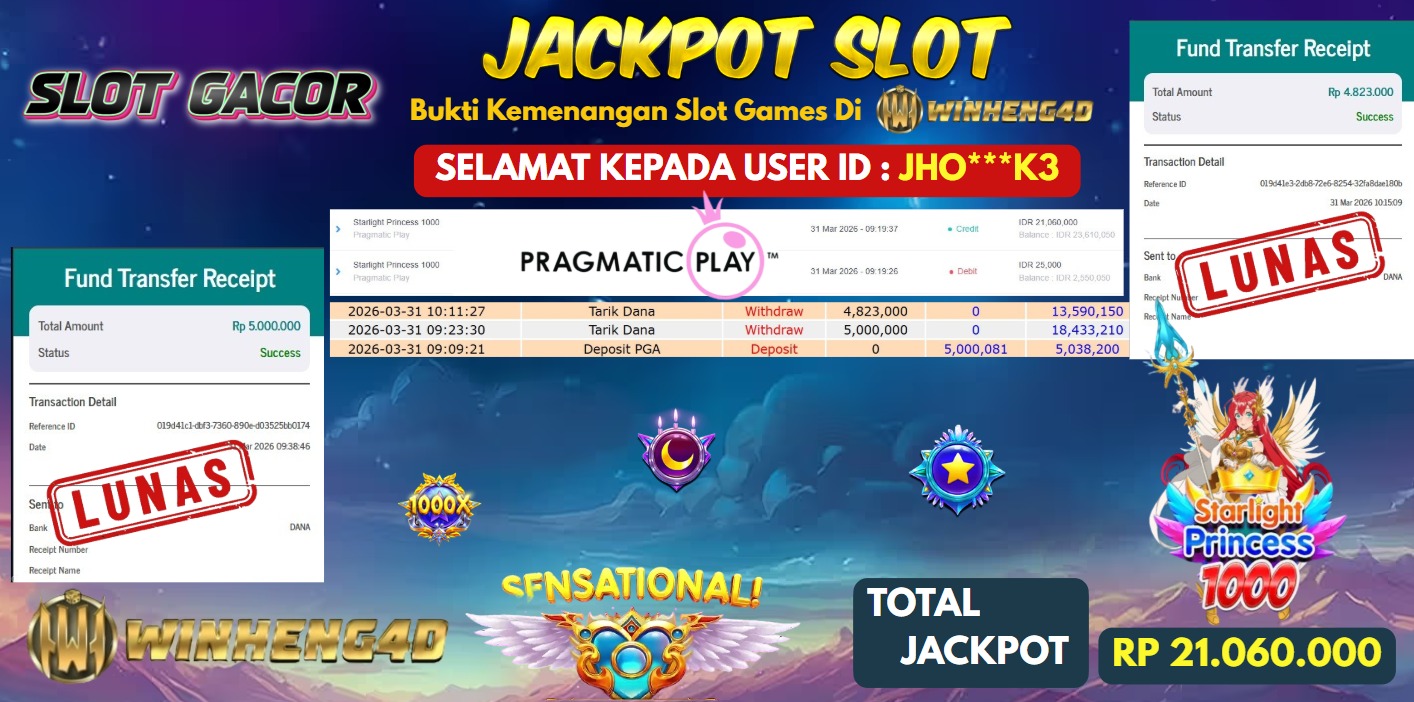 Selamat kepada User ID : JHO***K3 Telah berhasil mendapatkan kemenangan besar pada Permainan JP SLOT STARLIGHT PRINCESS 1000 Dengan kemenangan … Baca selengkapnya...