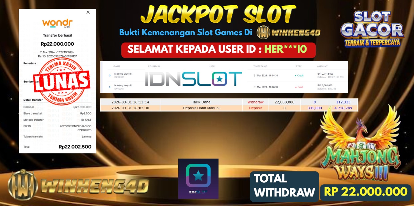 Selamat kepada User ID : HER***IO Telah berhasil mendapatkan kemenangan besar pada Permainan JP SLOT MAHJONG WAYS III Dengan kemenangan … Baca selengkapnya...