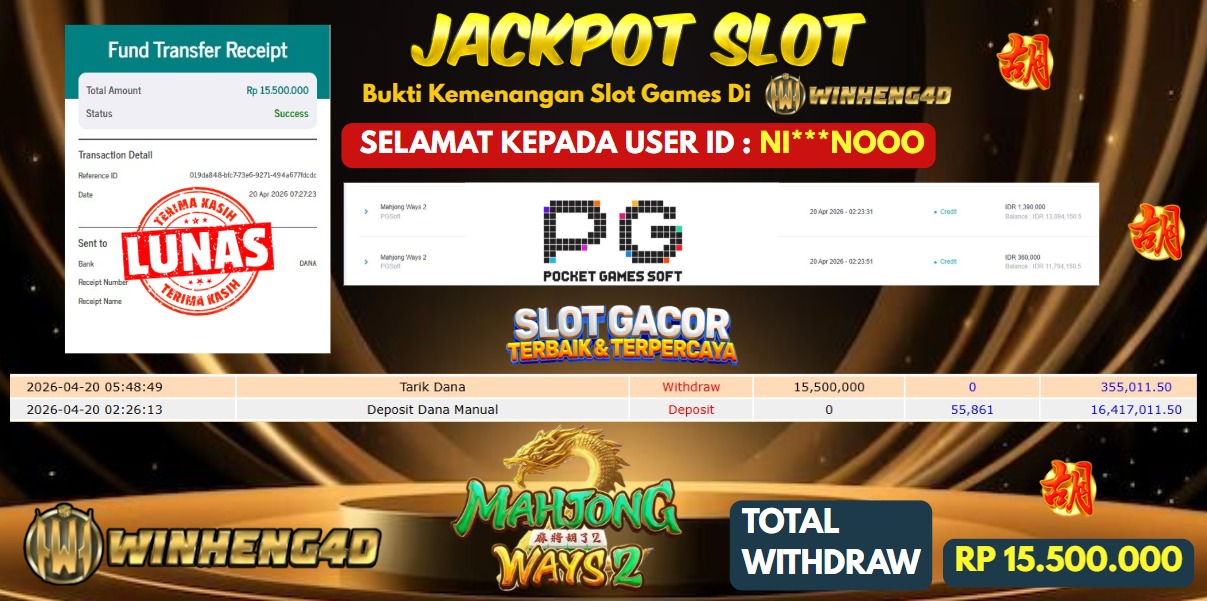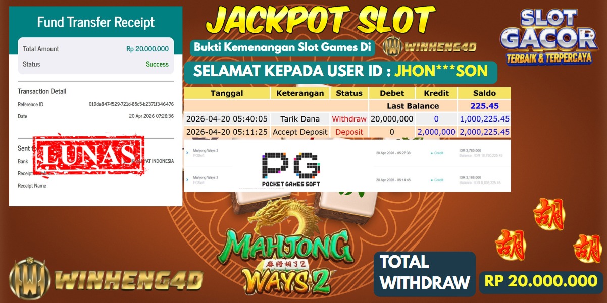 SELAMAT KEPADA MEMBER JP SLOT MAHJONG WAYS 2 Rp 20.000.000,- LUNAS