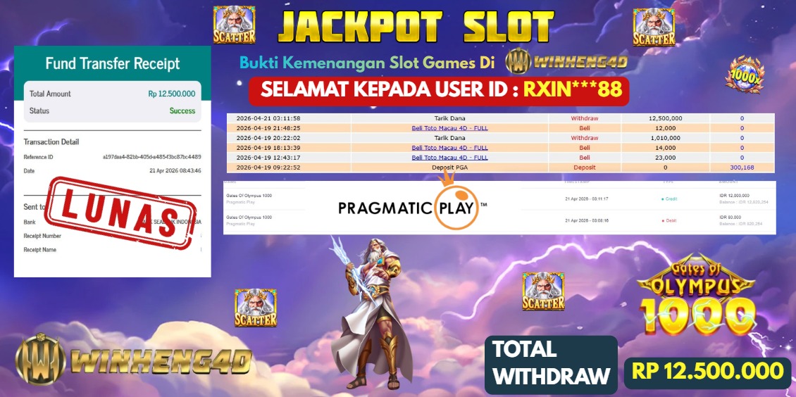 Selamat kepada User ID : RXIN***88 Telah berhasil mendapatkan kemenangan besar pada Permainan JP SLOT GATES OF OLYMPUS 1000 Dengan … Baca selengkapnya...