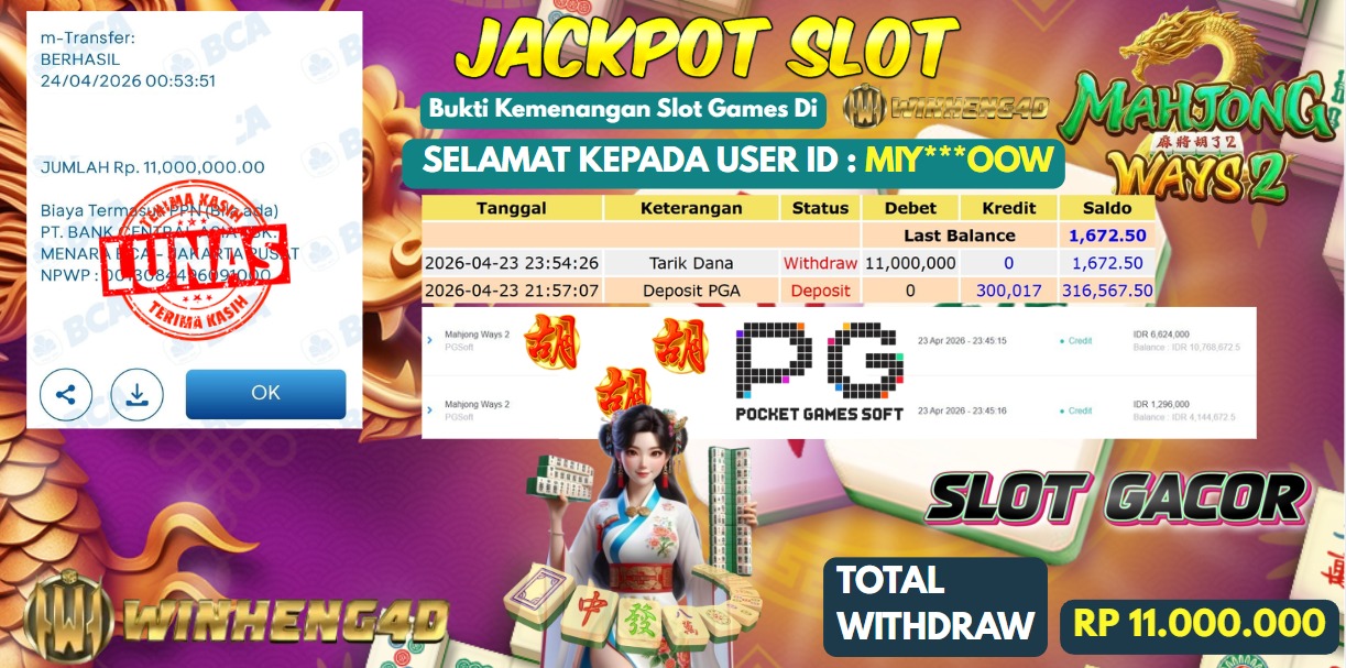 Selamat kepada User ID : MIY***OOW Telah berhasil mendapatkan kemenangan besar pada Permainan JP SLOT MAHJONG WAYS 2 Dengan kemenangan … Baca selengkapnya...