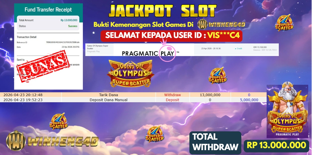 Selamat kepada User ID : VIS***C4 Telah berhasil mendapatkan kemenangan besar pada Permainan JP SLOT GATES OF OLYMPUS SUPER SCATTER … Baca selengkapnya...