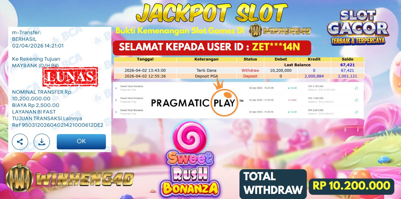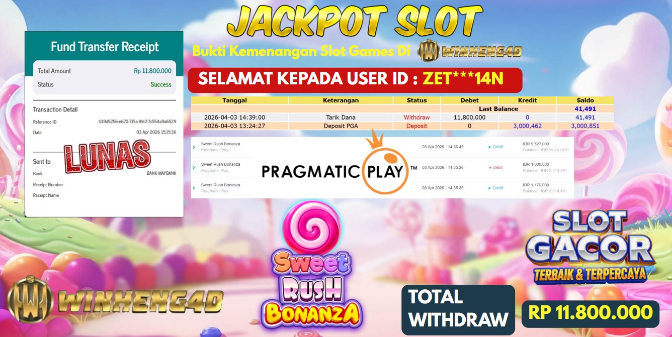 SELAMAT KEPADA MEMBER JP SLOT SWEET RUSH BONANZA Rp 11.000.000,- LUNAS