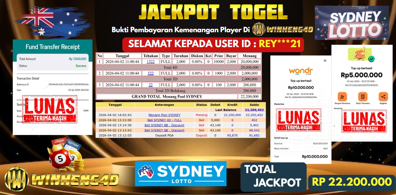 Selamat kepada User ID : REY***21 Telah berhasil mendapatkan kemenangan besar pada Permainan JP TOGEL SYDNEY LOTTO Dengan kemenangan Sebesar … Baca selengkapnya...