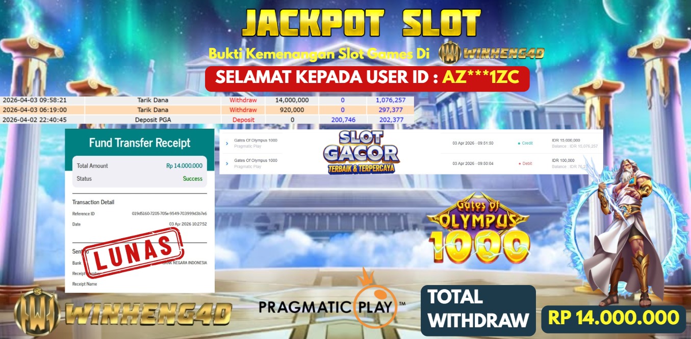 Selamat kepada User ID : AZ***1ZC Telah berhasil mendapatkan kemenangan besar pada Permainan JP SLOT GATES OF OLYMPUS 1000 Dengan … Baca selengkapnya...