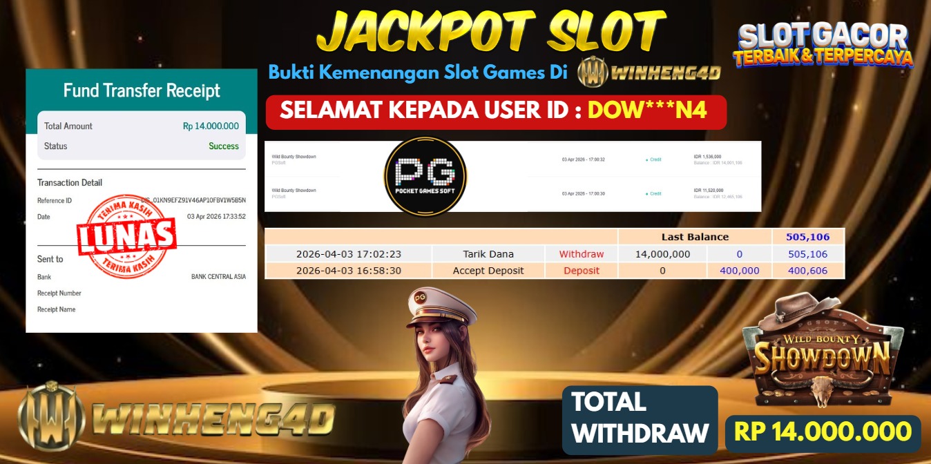 Selamat kepada User ID : GIG***45 Telah berhasil mendapatkan kemenangan besar pada Permainan JP SLOT WILD BOUNTY SHOWDOWN Dengan kemenangan … Baca selengkapnya...