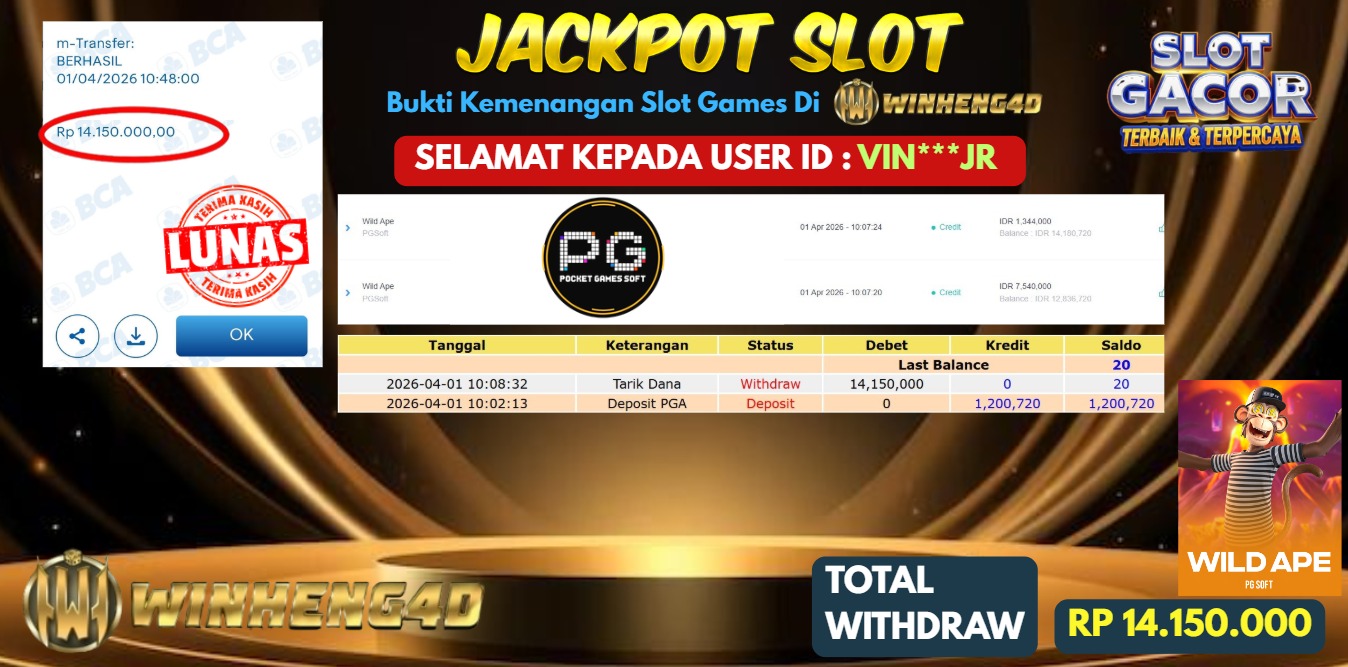 Selamat kepada User ID : VINI***JR Telah berhasil mendapatkan kemenangan besar pada Permainan JP SLOT WILD APE Dengan kemenangan Sebesar … Baca selengkapnya...