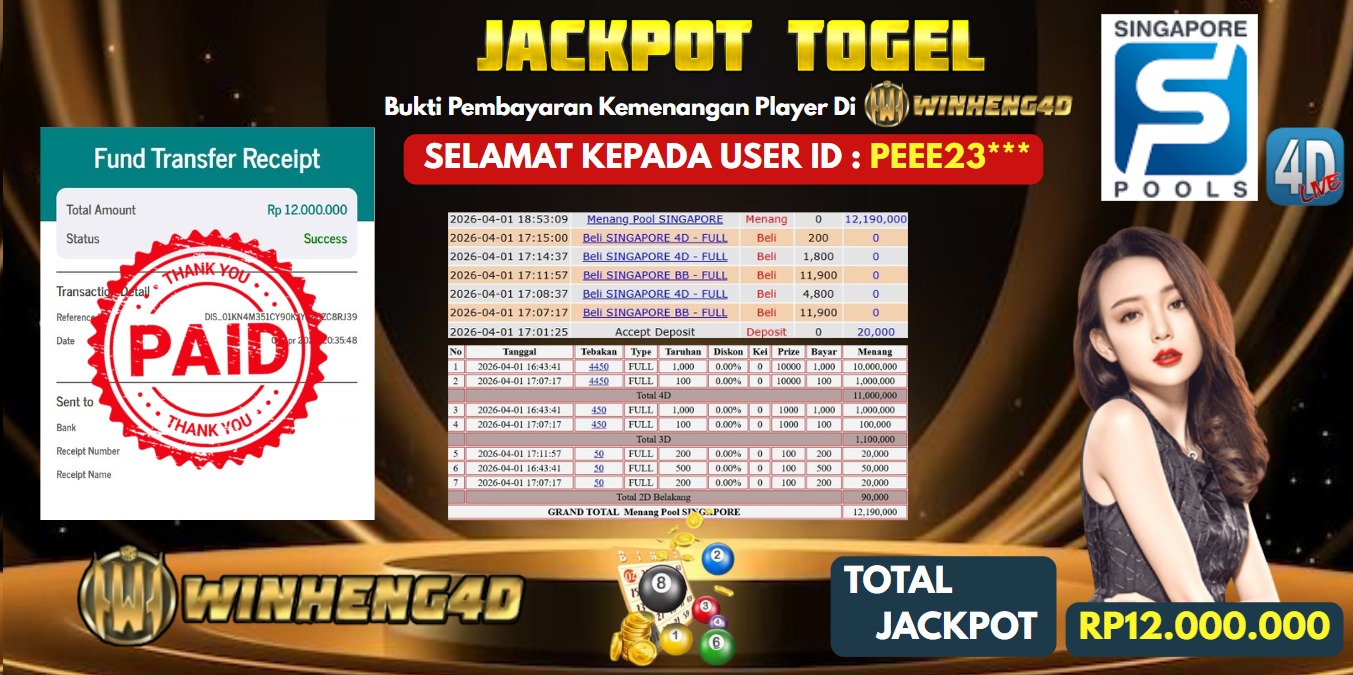 Selamat kepada User ID : PEEE23*** Telah berhasil mendapatkan kemenangan besar pada Permainan JP TOGEL SINGAPORE Dengan kemenangan Sebesar Rp … Baca selengkapnya...