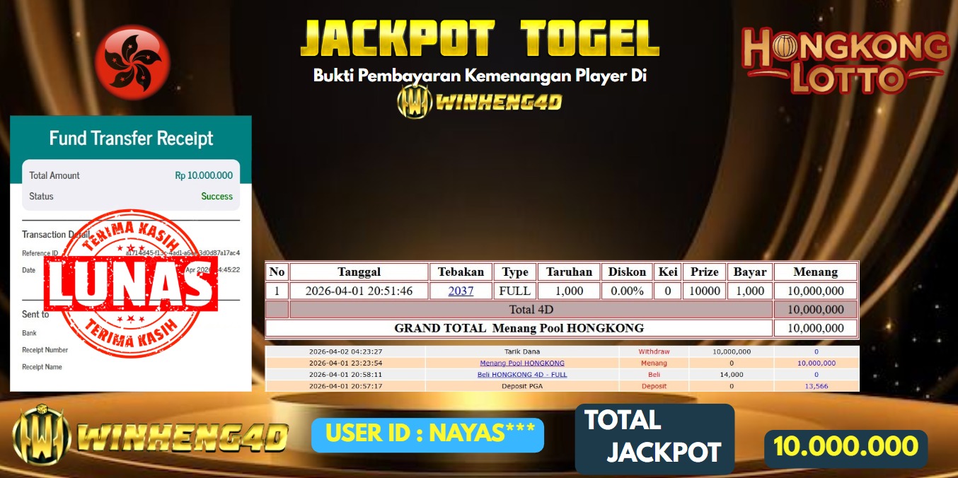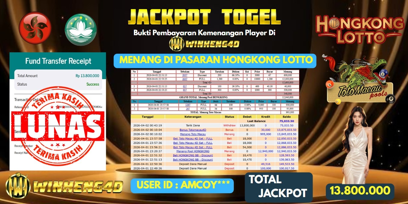 Selamat kepada User ID : AMCOY*** Telah berhasil mendapatkan kemenangan besar pada Permainan JP TOGEL HONGKONG LOTTO DAN TTM MACAU … Baca selengkapnya...