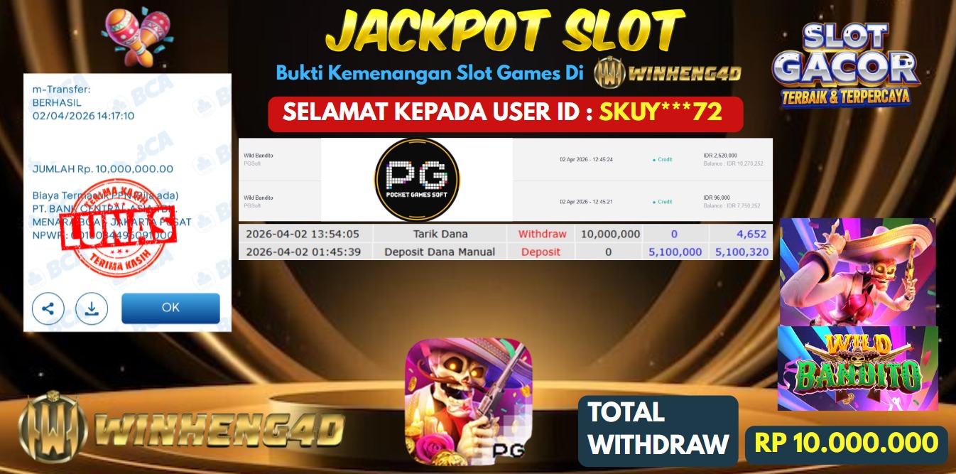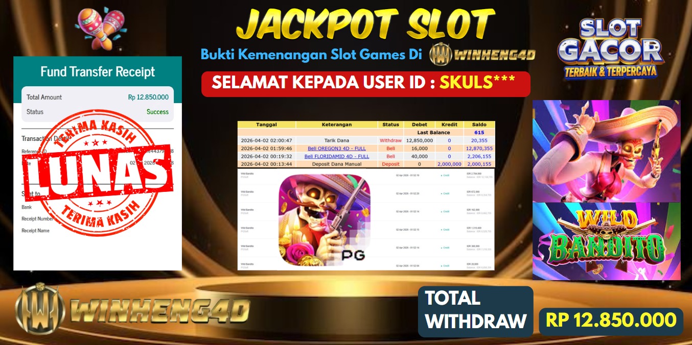 Selamat kepada User ID : SKUY***72 Telah berhasil mendapatkan kemenangan besar pada Permainan JP SLOT WILD BANDITO Dengan kemenangan Sebesar … Baca selengkapnya...
