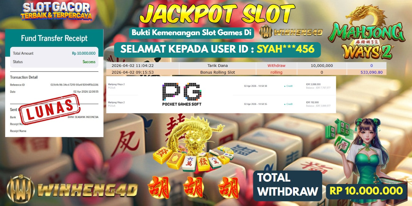 SELAMAT KEPADA MEMBER JP SLOT MAHJONG WAYS 2 Rp 10.000.000,- LUNAS