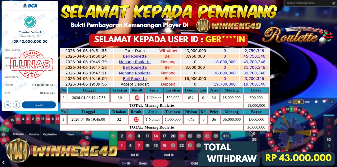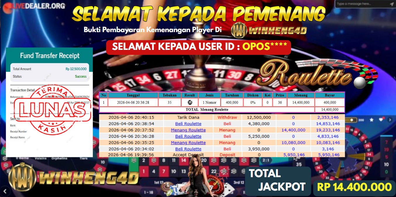 Selamat kepada User ID : OPOS*** Telah berhasil mendapatkan kemenangan besar pada Permainan JP LIVE ROULETTE Dengan kemenangan Sebesar Rp … Baca selengkapnya...