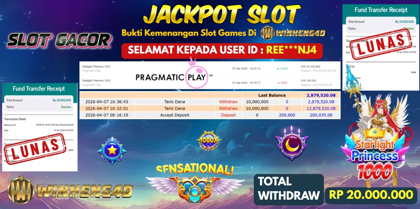 Selamat kepada User ID : NURRR*** Telah berhasil mendapatkan kemenangan besar pada Permainan JP SLOT STARLIGHT PRINCESS 1000 Dengan kemenangan … Baca selengkapnya...