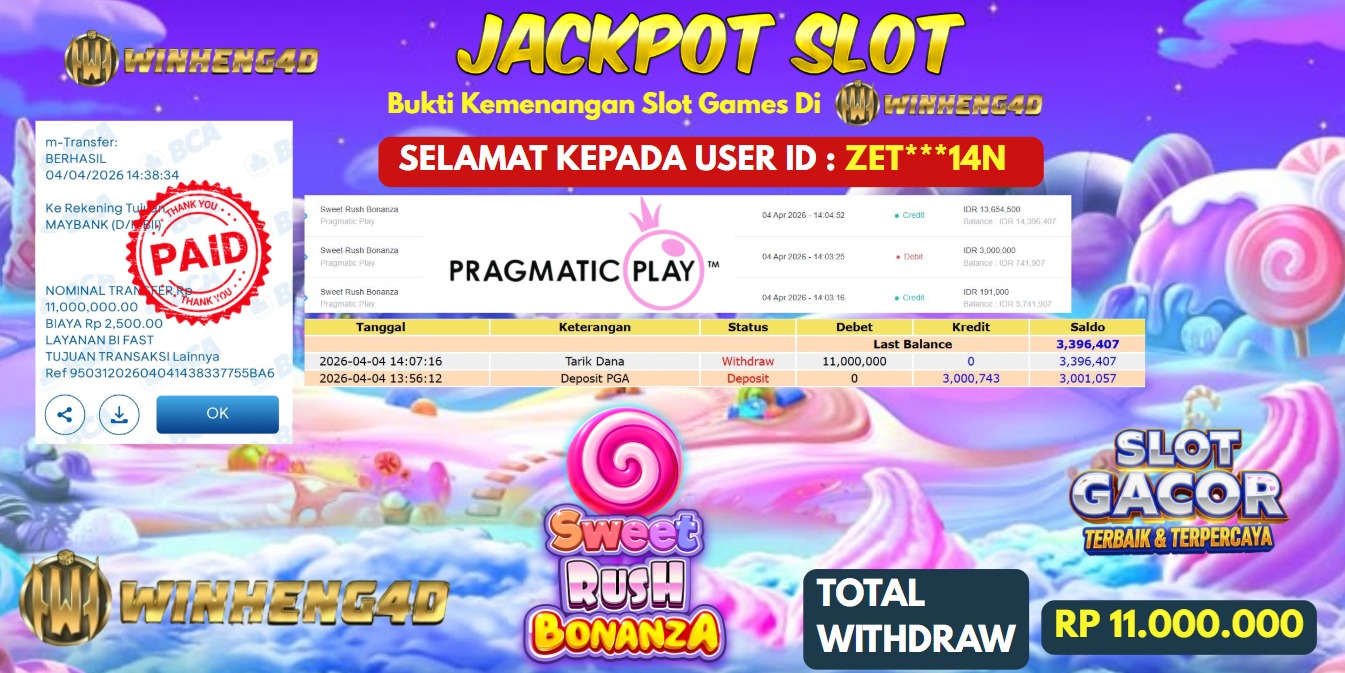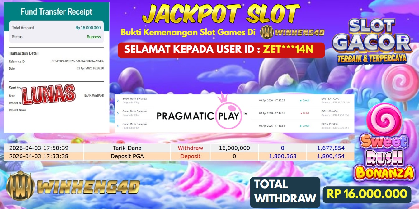 Selamat kepada User ID : ZET***14N Telah berhasil mendapatkan kemenangan besar pada Permainan JP SLOT SWEET RUSH BONANZA Dengan kemenangan … Baca selengkapnya...