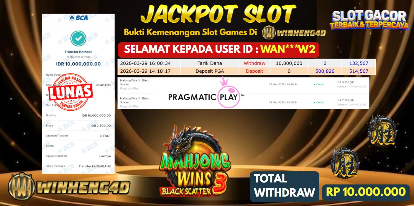 Selamat kepada User ID : WAN***W2 Telah berhasil mendapatkan kemenangan besar pada Permainan JP SLOT MAHJONG WINS 3 BLACK SCATTER … Baca selengkapnya...
