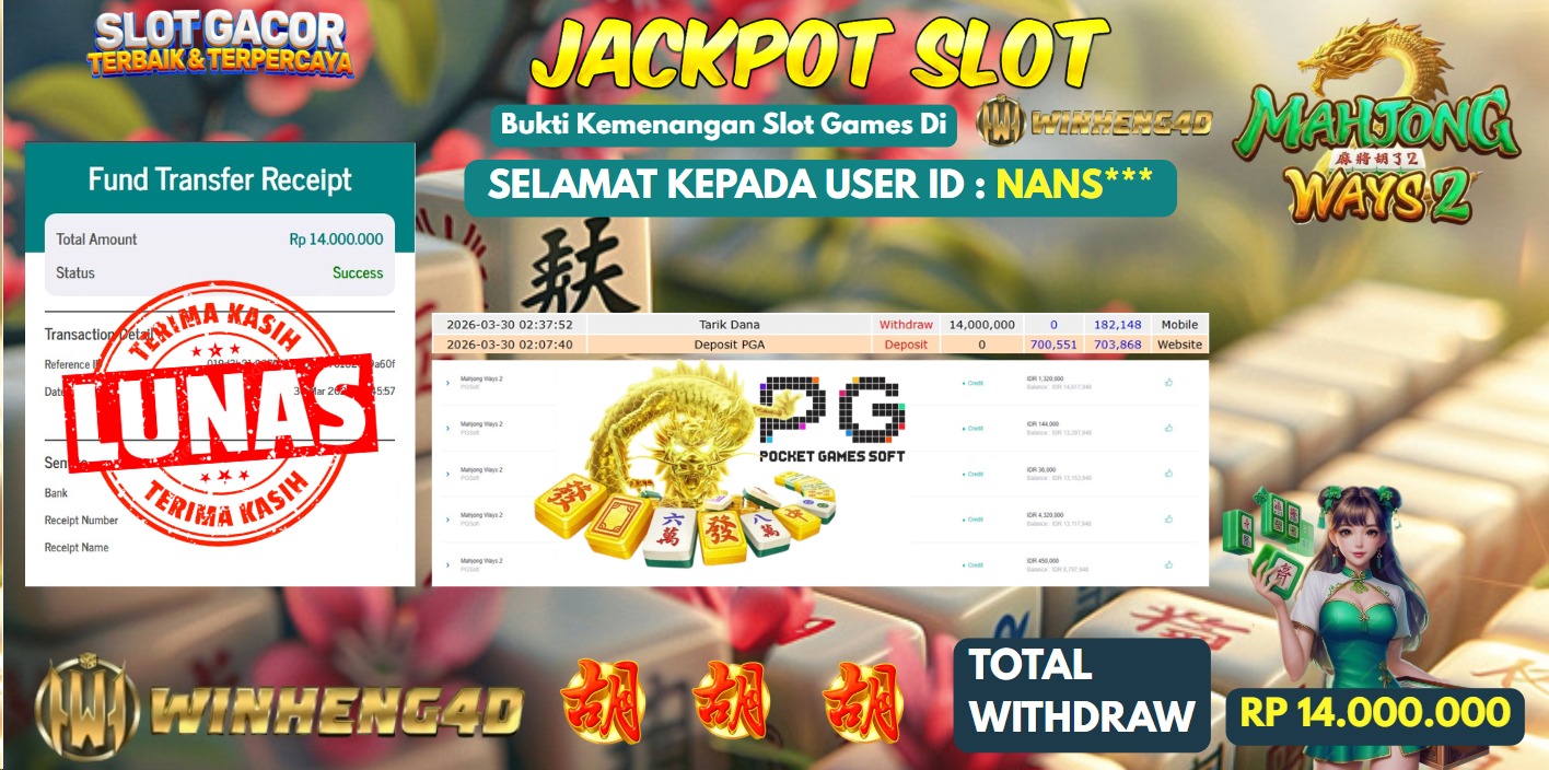Selamat kepada User ID : NANS*** Telah berhasil mendapatkan kemenangan besar pada Permainan JP SLOT MAHJONG WAYS Dengan kemenangan Sebesar … Baca selengkapnya...