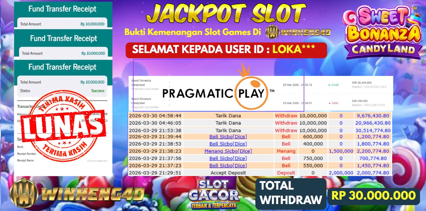 Selamat kepada User ID : LOKA*** Telah berhasil mendapatkan kemenangan besar pada Permainan JP SWEET BONANZA CANDYLAND Dengan kemenangan Sebesar … Baca selengkapnya...