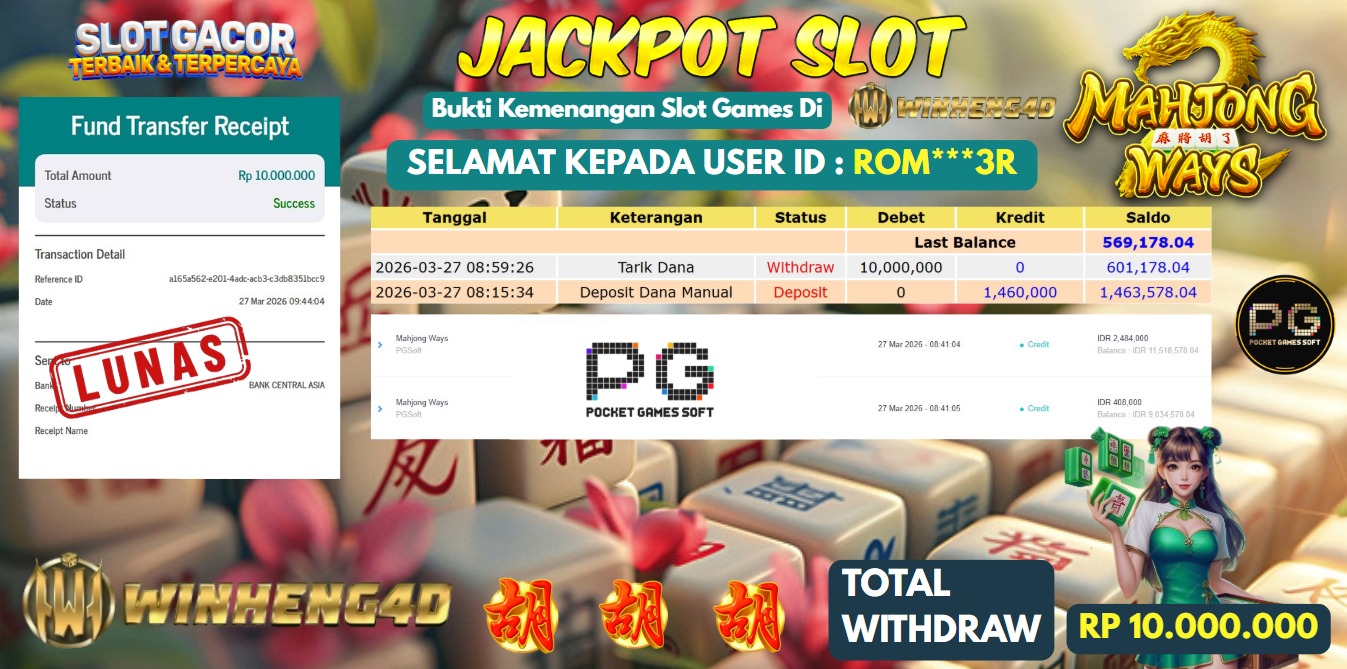 SELAMAT KEPADA MEMBER JP SLOT MAHJONG WAYS Rp 22.000.000,- LUNAS