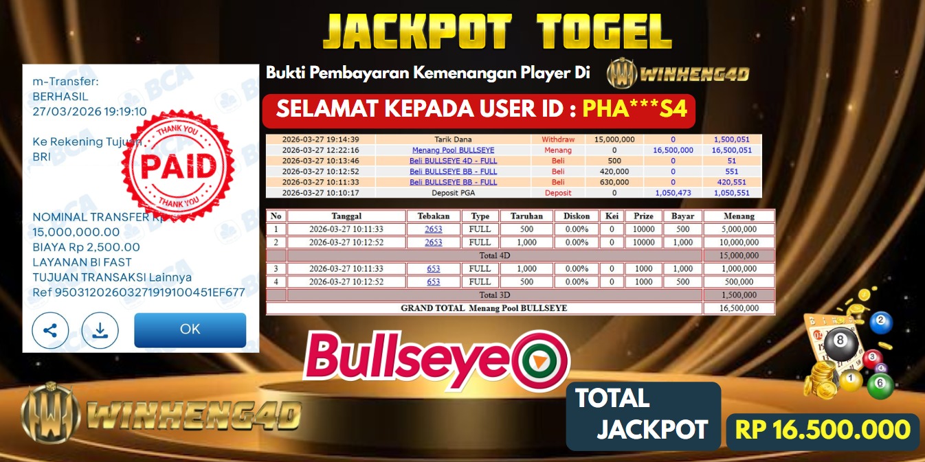 Selamat kepada User ID : PHA***S4 Telah berhasil mendapatkan kemenangan besar pada Permainan JP TOGEL BULLSEYE Dengan kemenangan Sebesar Rp … Baca selengkapnya...