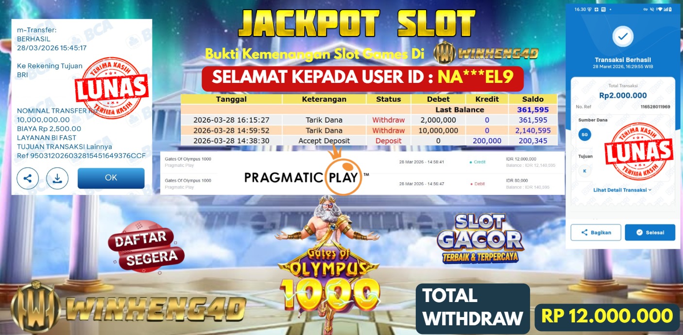 Selamat kepada User ID : NA***EL9 Telah berhasil mendapatkan kemenangan besar pada Permainan JP SLOT GATES OF OLYMPUS 1000 Dengan … Baca selengkapnya...