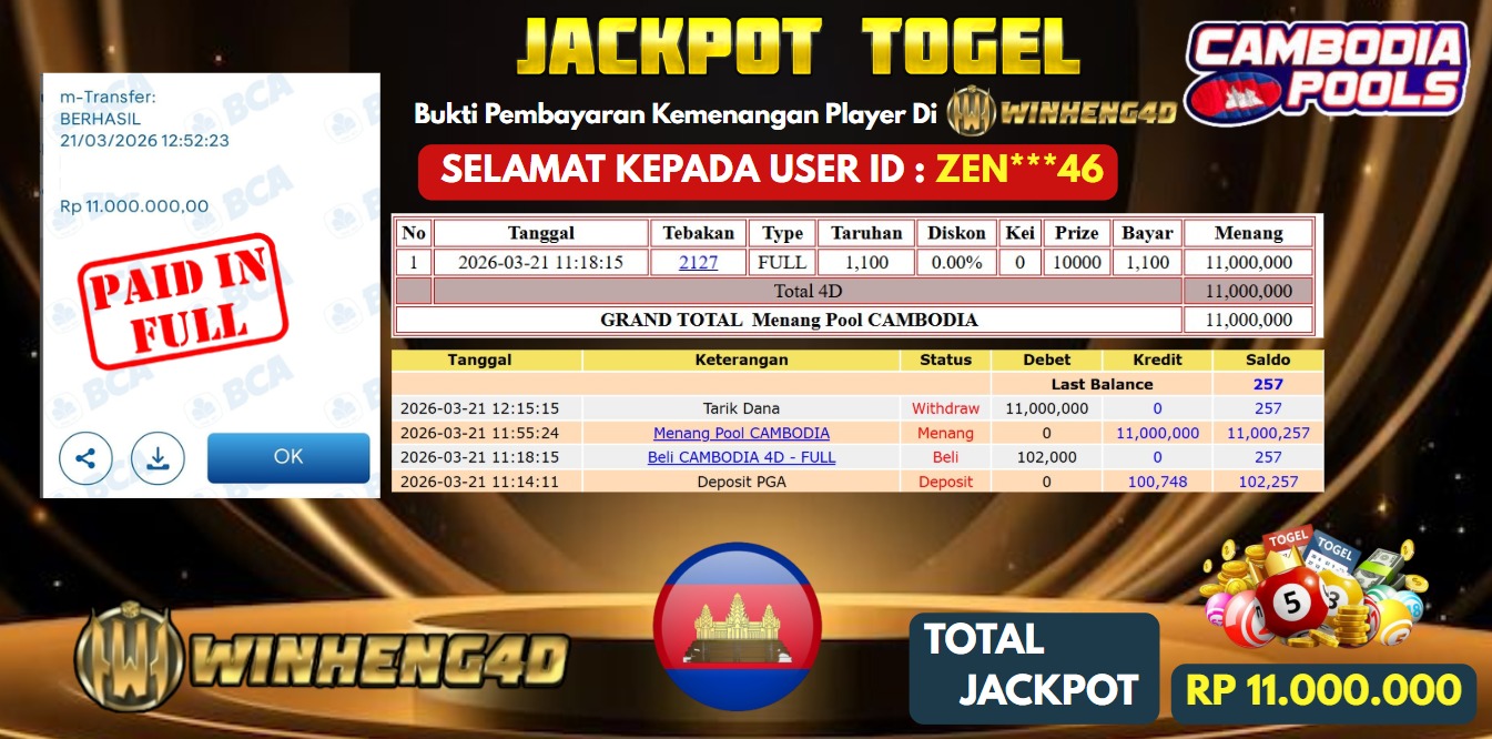 Selamat kepada User ID : ZEN***46 Telah berhasil mendapatkan kemenangan besar pada Permainan JP TOGEL CAMBODIA Dengan kemenangan Sebesar Rp … Baca selengkapnya...