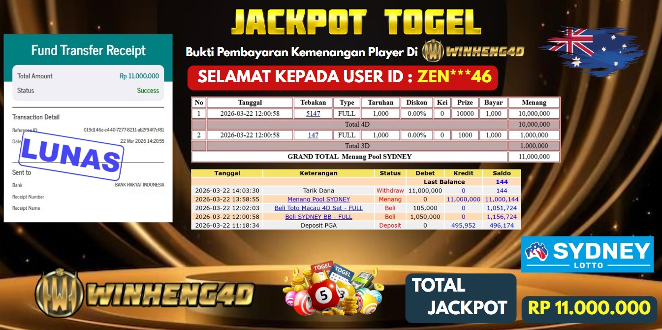 Selamat kepada User ID : ZEN***46 Telah berhasil mendapatkan kemenangan besar pada Permainan JP TOGEL SYDNEY LOTTO Dengan kemenangan Sebesar … Baca selengkapnya...