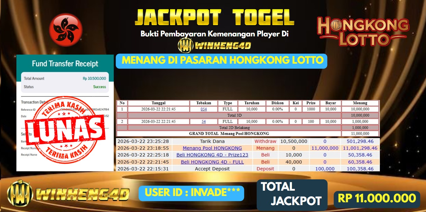 Selamat kepada User ID : INVADE*** Telah berhasil mendapatkan kemenangan besar pada Permainan JP TOGEL HONGKONG LOTTO Dengan kemenangan Sebesar … Baca selengkapnya...