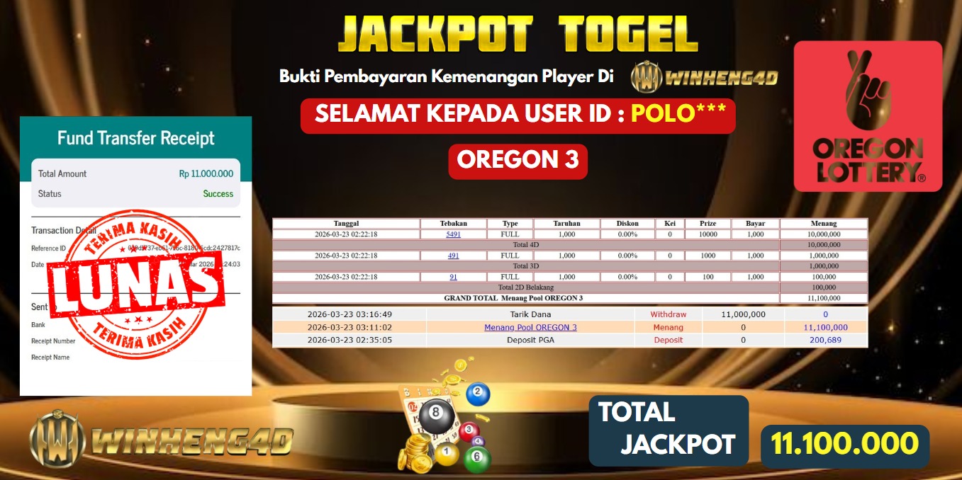 Selamat kepada User ID : POLO*** Telah berhasil mendapatkan kemenangan besar pada Permainan JP TOGEL OREGON 3 Dengan kemenangan Sebesar … Baca selengkapnya...