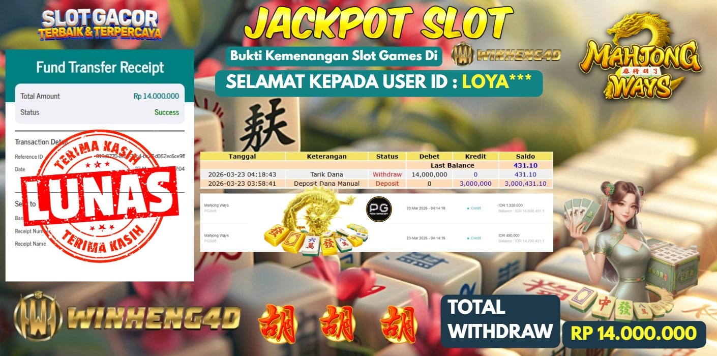 Selamat kepada User ID : LOYA*** Telah berhasil mendapatkan kemenangan besar pada Permainan JP SLOT MAHJONG WAYS Dengan kemenangan Sebesar … Baca selengkapnya...