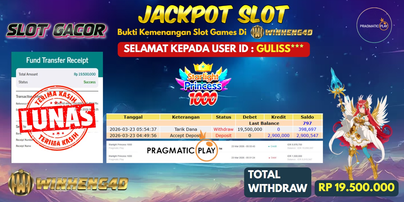 Selamat kepada User ID : GULISS*** Telah berhasil mendapatkan kemenangan besar pada Permainan JP SLOT STARLIGHT PRINCESS 1000 Dengan kemenangan … Baca selengkapnya...