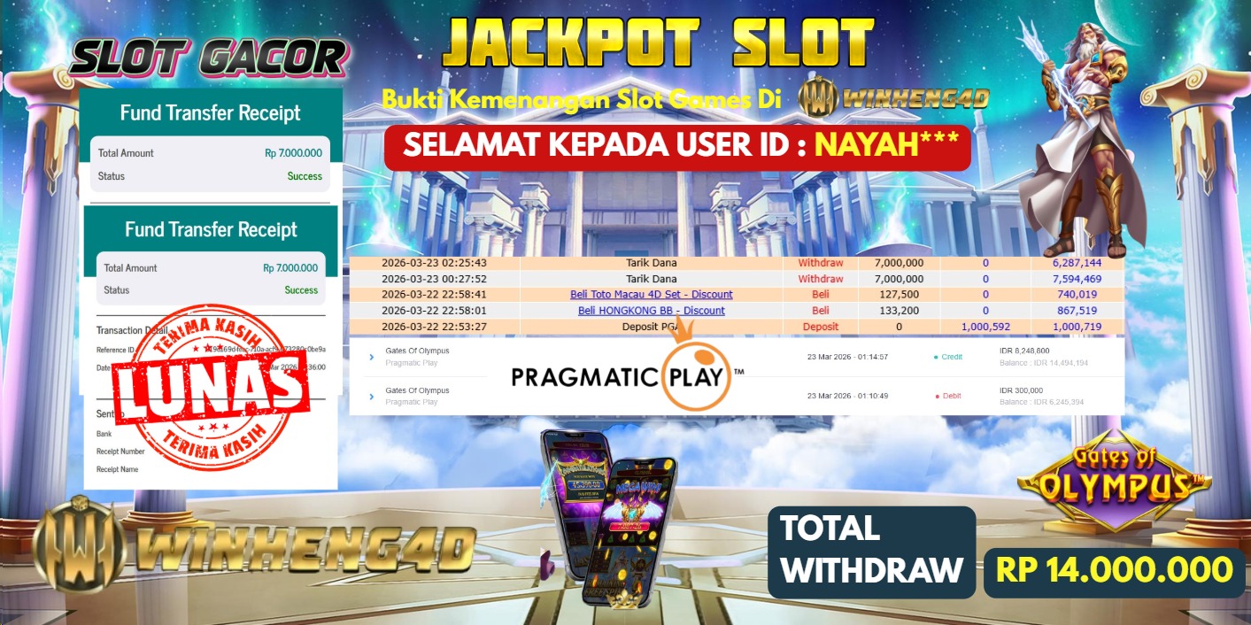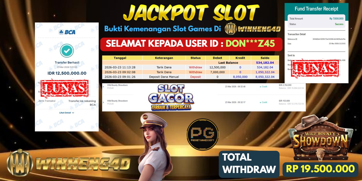 SELAMAT KEPADA MEMBER JP SLOT WILD BOUNTY SHOWDOWN Rp 19.500.000,- LUNAS