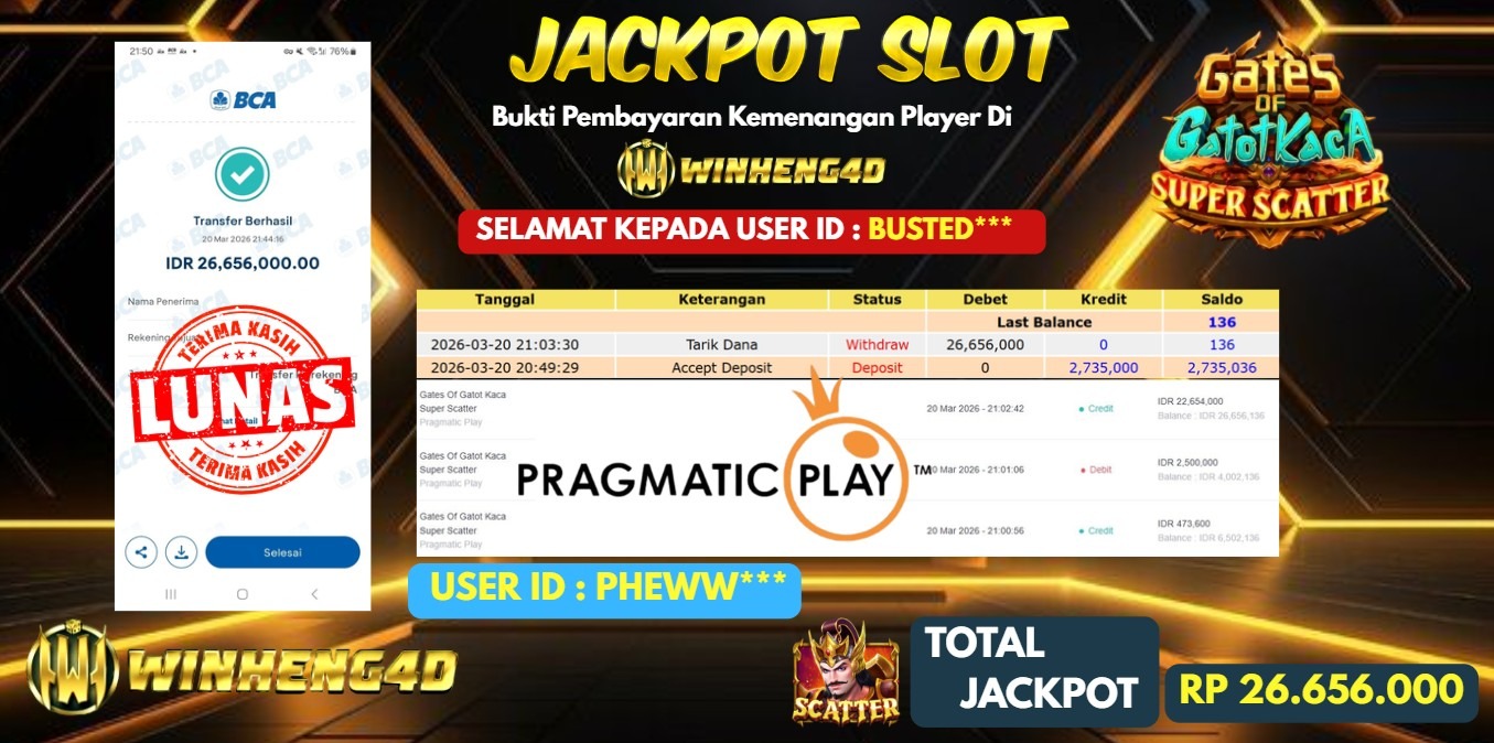 Selamat kepada User ID : PHEWW*** Telah berhasil mendapatkan kemenangan besar pada Permainan JP SLOT GATES OF GATOT KACA SUPER … Baca selengkapnya...