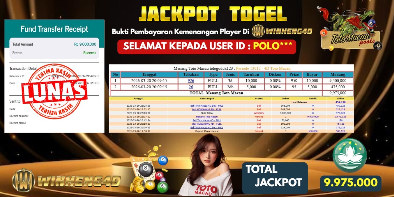 Selamat kepada User ID : ALEZI*** Telah berhasil mendapatkan kemenangan besar pada Permainan JP TOGEL TOTO MACAU Dengan kemenangan Sebesar … Baca selengkapnya...