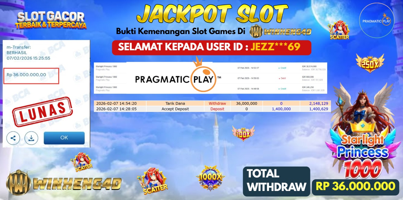 Selamat kepada User ID : JEZZ***69 Telah berhasil mendapatkan kemenangan besar pada Permainan JP SLOT STARLIGHT PRINCESS 1000 Dengan kemenangan … Baca selengkapnya...