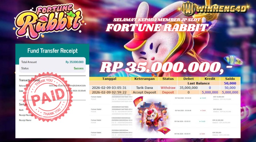 Selamat kepada User ID : MAH***NI9 Telah berhasil mendapatkan kemenangan besar pada Permainan JP SLOT FORTUNE RABBIT Dengan kemenangan Sebesar … Baca selengkapnya...