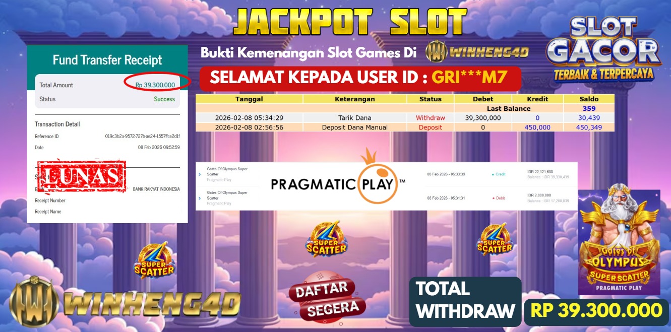 Selamat kepada User ID : GRI***M78 Telah berhasil mendapatkan kemenangan besar pada Permainan JP SLOT GATES OF OLYMPUS SUPER SCATTER … Baca selengkapnya...