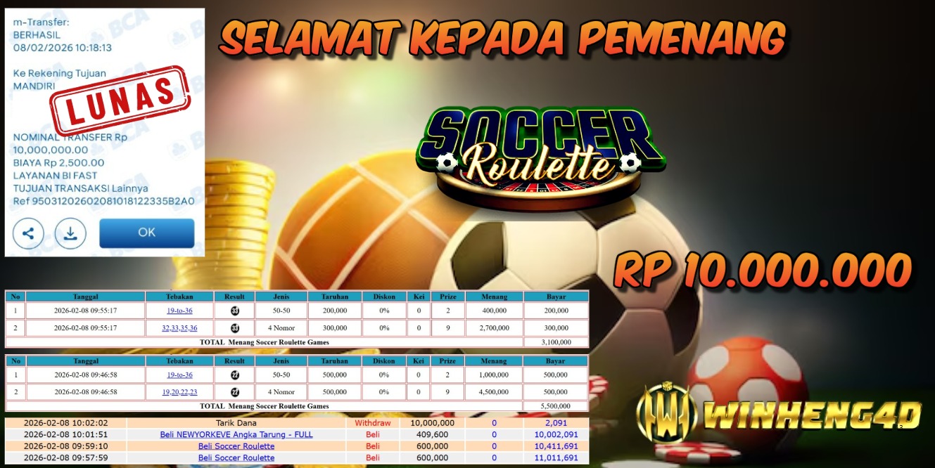 Selamat kepada User ID : NEO***NA88 Telah berhasil mendapatkan kemenangan besar pada Permainan JP LIVE GAME SOCCER ROULETTE Dengan kemenangan … Baca selengkapnya...
