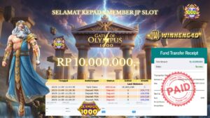 SELAMAT KEPADA MEMBER JP SLOT GATES OF OLYMPUS 1000 TOTAL RP 10.000.000,- LUNAS